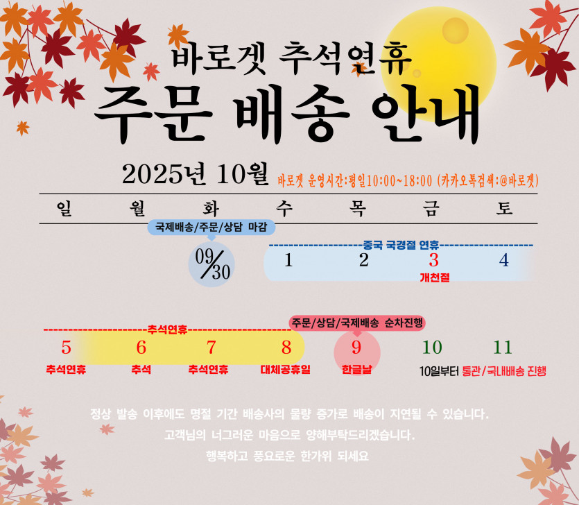 2025년10월 추석(중국국경절)연휴 안내드립니다